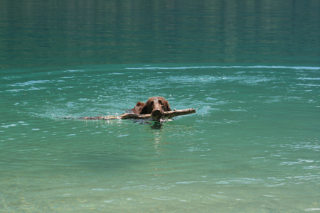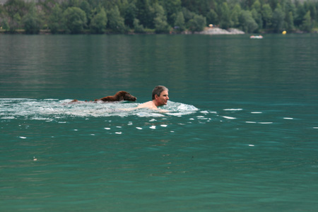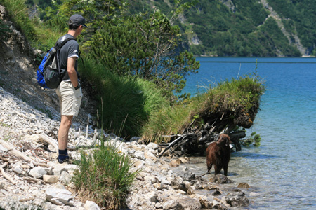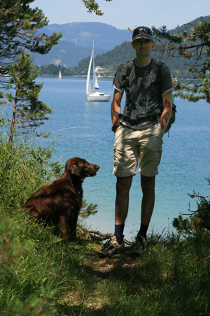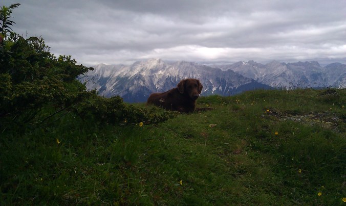 Idag har det varit soligt och varmt, men väldigt kvavt. Vi förmodade att det fina vädret bara skulle vara till eftermiddagen, men nu är klockan redan 17:30 och det har fortfarande inte börjat åska. Vi åkte iväg till Achensee gjorde en liten vandring och hittade sen en plats där vi kunde sola och bada lite. Toppen tyckte Russin som säkert tyckte det var bäst att stanna kvar i vattnet överhuvudtagen. Nu ligger hon rätt så utslagen bredvid stolen.