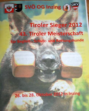 I helgen var det då dax för höstens stora tävling ”Tiroler Sieger” och finalen på det som kallas BGH-Cup. Det är ett mästerskap ”43. Tiroler Meisterschaft” som håller på i tre dagar. BGH klasserna 1-3, IPO 1-3, IPO RH-FL A und B (ytsök) och IPO RH- T A och B (ruinsök) blir bedömda. I helgen var det 80 startande ekipage varav 15 i Russins och min klass BGH 3. Vi startade straxt före tolv i lördags. Det var kallt och blåsigt och precis när det var vår tur började det regna. Tyvärr hade vi lite otur eftersom vi först fick vänta på en som kom lite försent! (nästan 15min) och sen fick vi starta i ”dreier Radl” det betyder att om det inte är ett jämt antal startande får de tre sista starta tillsammans. Den första går sitt programm, den andra får börja läggandet och den tredje får gå av plan och vänta. Normalt startar man två och två, den ena får börja med att gå och lägga sin hund medans den andra får visa upp ”programmet”. Nu fick Russin och jag börja med läggandet, sen fick vi vänta och till slut visa upp vad vi kunde. Under tiden man väntar får man naturligtvis inte belöna hunden på något sätt och med Russin som lätt tappar motivationen är det inte lätt. Russin var dock jätteduktig, för även om det gick lite trögt i början och hon verkade lite okoncentrerad och långsam, blev det bättre och bättre och jag är otroligt nöjd med henne. Det som jag definitivt inte är nöjd med är att jag själv hade en ”blackout” och glömde visa en vänstersväng. Det har jag haft väldigt svårt att acceptera. Vi fick iaf ihop fina 90 poäng av 100 och hade inte jag gjort det där felet hade vi fått 92. Den som vann hade 94 poäng och tvåan 92, trean 90 och fyran 90 och det var Russin och jag. Samma öde som de två tidigare proven då hunden var yngre och därför fick en bättre placering. Jag är ändå väldigt nöjd med resultatet även om jag var otroligt besviken på mig själv. På BGH-Cupen blev vi tvåa och det känns så härligt. Vi låg visserligen som etta efter de tre första tävlingarna, men den som vann och blev Tiroler Sieger vann även BGH-Cupen och det känns rätt så okay.