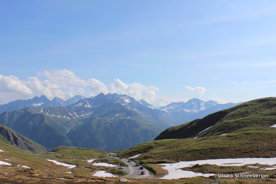 Svärföräldrarna som bor i Osttirol besöker vi var tredje vecka. När vi kör dit kör vi alltid över Felbertauernstrasse eftersom det är den närmsta vägen. Resan tar knappt två timmar. I början av juni var det ett stort jordskred som förstörde en del av vägen och sedan dess kan man inte ta sig fram där utan måste göra en stor omväg, antingen över Italien och Brennerpasset, eller över Großglockner Hochalpenstraße. Eftersom det för det mesta går snabbast att köra över Brenner så tar vi den sträckan, men i fredags var det så fint väder så vi tyckte att idag kör vi över Großglockner. Så vackert!! Visst tar det längre tid och får man någon långsam framför sig, och det finns det naturligtvis gott om, så är det nästan omöjligt att köra om och sen är det är ju rätt så dyrt, men det är det verkligen värt att kosta på sig det. Här kommer några bilder som jag tog därifrån. Resan tog drygt fem timmar, men så hann vi med en kopp kaffe också 🙂