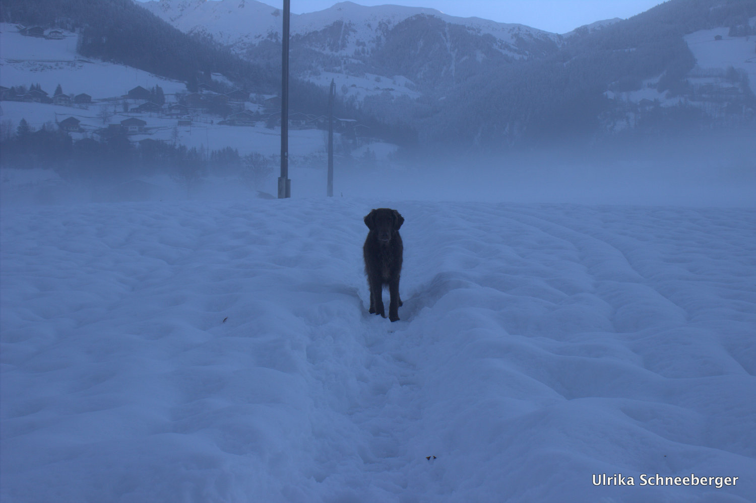 Sen fredagseftermiddag stack vi iväg till svärföräldrarna igen för att träffa Arthurs bror och hans familj som var på besök från Sverige. Kul att träffas igen! När man kommer till Osttirol kan man tro att det är helt helt annat land eftersom där är riktigt gott om snö och mer kom det under lördagen. Allt ser så fint ut när det är snö vid den här tiden. Här i Wattens är allt bara brunt och lite grönt och skitigt. Nåja, så kan vi iaf träna spår Russin och jag, så jag ska inte klaga.