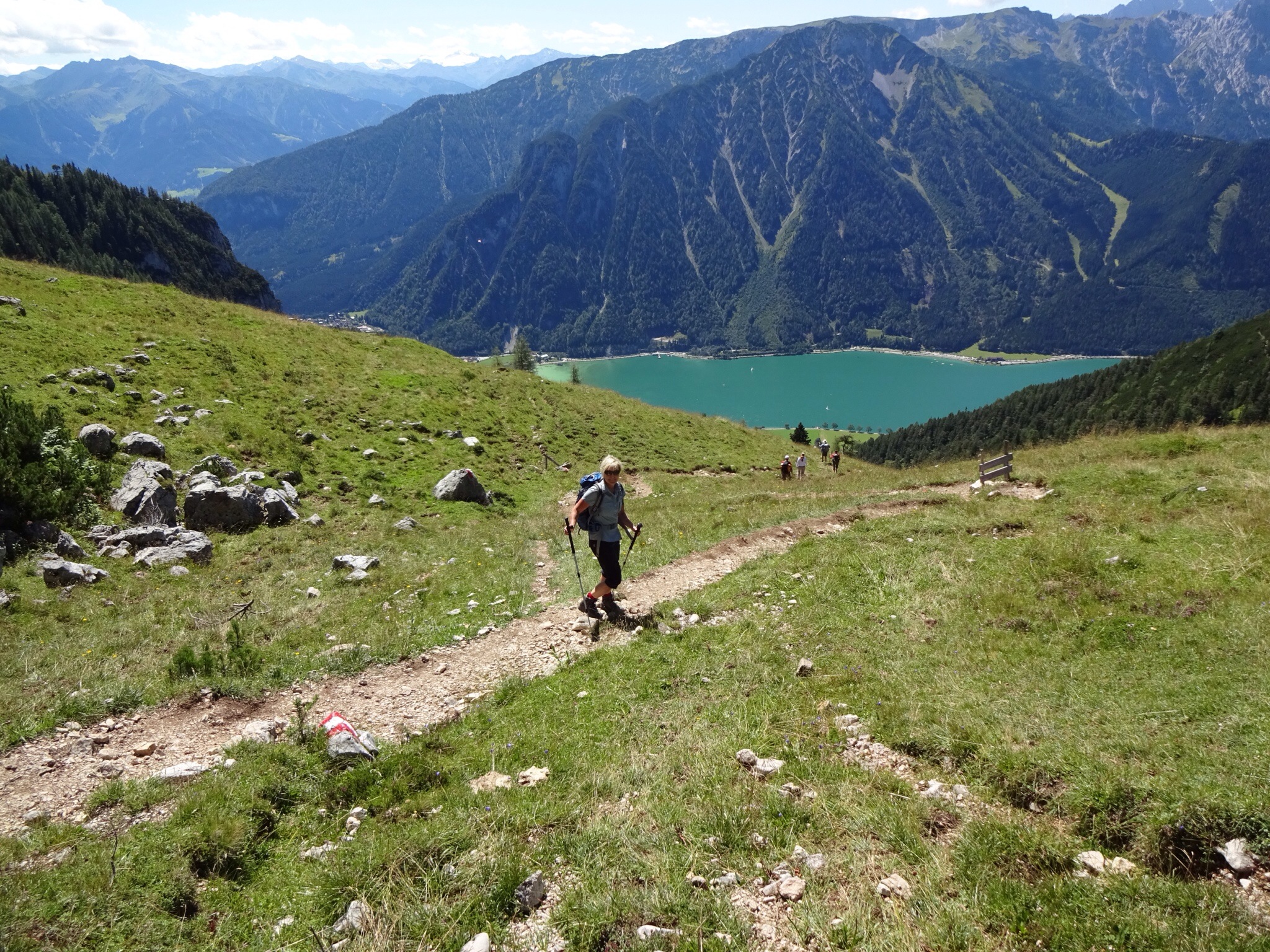 Sommarens väder har varit allt annat än bra. Det har regnat och regnat och regnat. Enstaka dagar har varit bra och förra söndagen var en sådan dag. Vi passade på och göra sommarens första riktiga vandring och vi fick en riktigt fin dag. Turen gick till Hochiss i Rofan. Hochiss är en bergstopp som är 2.299 möh. Eftersom de flesta tänkte som vi – den här dagen måste vi utnyttja – var vi verkligen inte ensamma. Vi tog kabinbanan upp till Erfurterhütte och vandrade sen upp till toppen, fikade lite och njöt av utsikten för att därefter gå till baka igen. Ner tog vi en annan väg dvs över Dalfaz-alm. Det var en väldigt fin dag även om det var en som saknades.