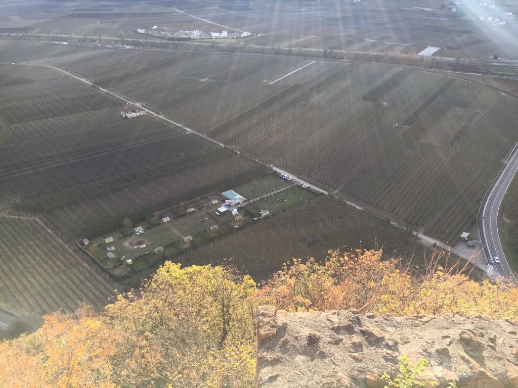 Utsikt över träningsplatsen und hundpensionatet i Terlan.