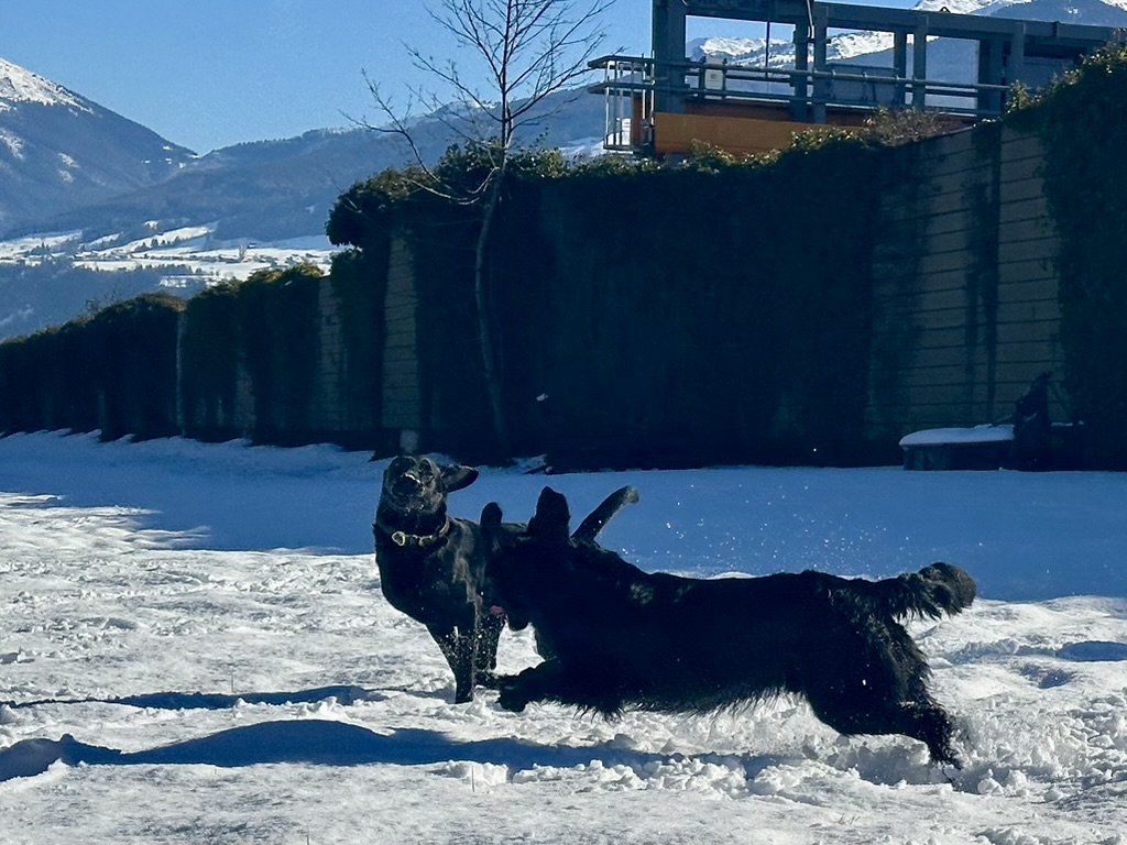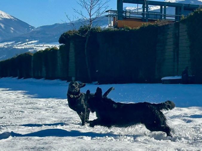 En längre promenad i snön blev det idag. Nu är hundarna nöjda och trötta.