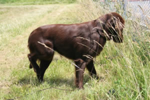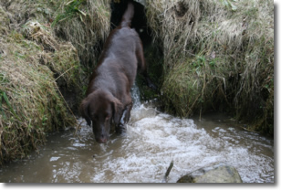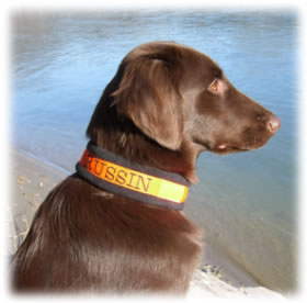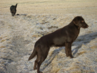 Igår eftermiddag hade vi dummieträning igen. Det var väl inte så svåra övningar men avstånden var väldigt långa och det har vi inte alls tränat förut och terrängen var rätt så svår med några backar. Jag tyckte hon jobbade riktigt bra även om hon faktiskt kunde vara lite snabbare att komma tillbaka med dummyn. Iallafall hade tränaren tagit med sig sina tre labradorer som låg på en av backarna med ca. en meter imellan hundarna. Jag vet inte riktigt hur Russin kom precis dit, för de låg snett framför mej. Hon kom alltså långsamt springande och upptäckte labbarna först när hon var precis framför dem, blev stående, släppte dummyn, reste ragg, svansen mellan benen och försökte sedan gå i mellan. Då var en av labbarna olydig reste sig upp och gick fram till Russin som kastade sig på rygg och bara väntade på vad som skulle hända. Han nosade bara lite på henne och så var det bra. Tränaren kom i en riktig galopp och morrade ordentligt på sin hund och Russin kom till mej, naturligtvis utan dummyn som hon glömde. Nåja, de sista övningarna gick bra igen. Hon var bara så söt när hon upptäckte labbarna!
