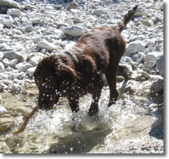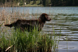 Vilken helg! Varmt som om det vore sommar med 25°. Vi badade t.o.m. igår och det var egentligen inte alls kallt i vattnet. Russin simmade riktigt fint och hon var ute mycket i vattnet. Förut slog hon så med framtassarna, men nu börjar det att se riktigt bra ut. Både i fredags och i lördags hade vi dummieträning. Russin är skendräktig och jag känner inte riktigt igen henne även om jag kanske skulle börja att bli van vid hennes sätt att vara nu. Löpet började ju den 12 mars och sen dess är hon ofta trött och hängig även om det har varit vissa dagar imellan då hon har varit pigg och skärpt till sig lite. Ialla fall är det kul att hämta 2-3 dummies, men sen får det vara nog. Från tisdagen t.om. idag har jag semester. Vad härligt det är! Tänk om man kunde vara ledig lite mer. Jag jobbar 40 h i veckan och har dessutom lite privata kunder. Ibland är det lite svårt att få tiden att räcka till, men med en make som hjälper till lite går det någorlunda. Det hade naturligtvis varit skönt med en 30 h /vecka. Nu ska jag duscha av mej och sedan ut med min söta chokladrussin.