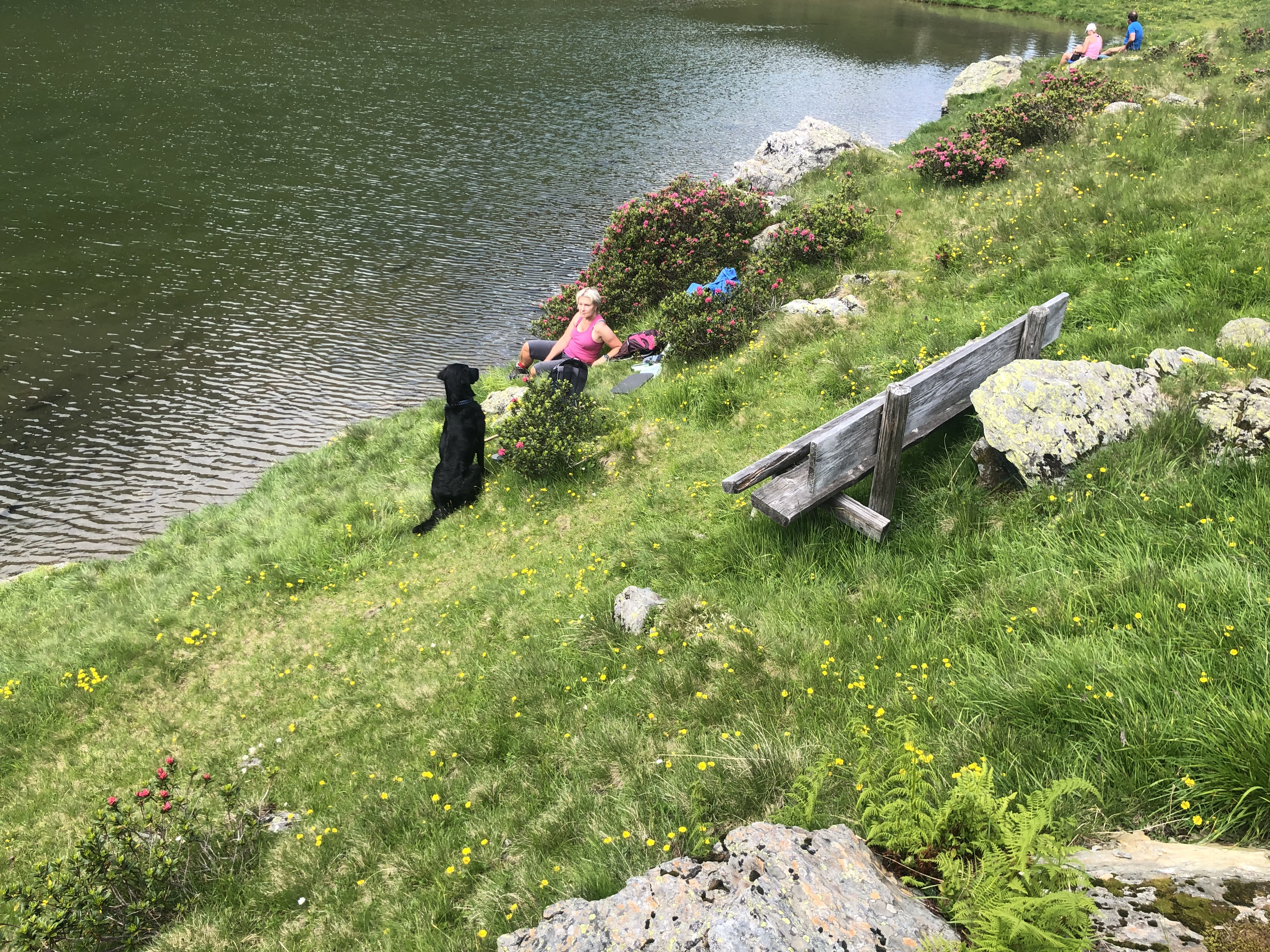 I lördags gjorde vi en härlig vandring till ”Nafingsee”. Nox fick simma lite och vi badade fötterna. Den lilla sjön ligger ca 1.950 möh och där är det naturligtvis inte lika varmt.