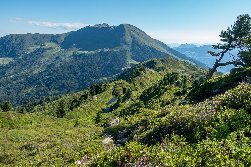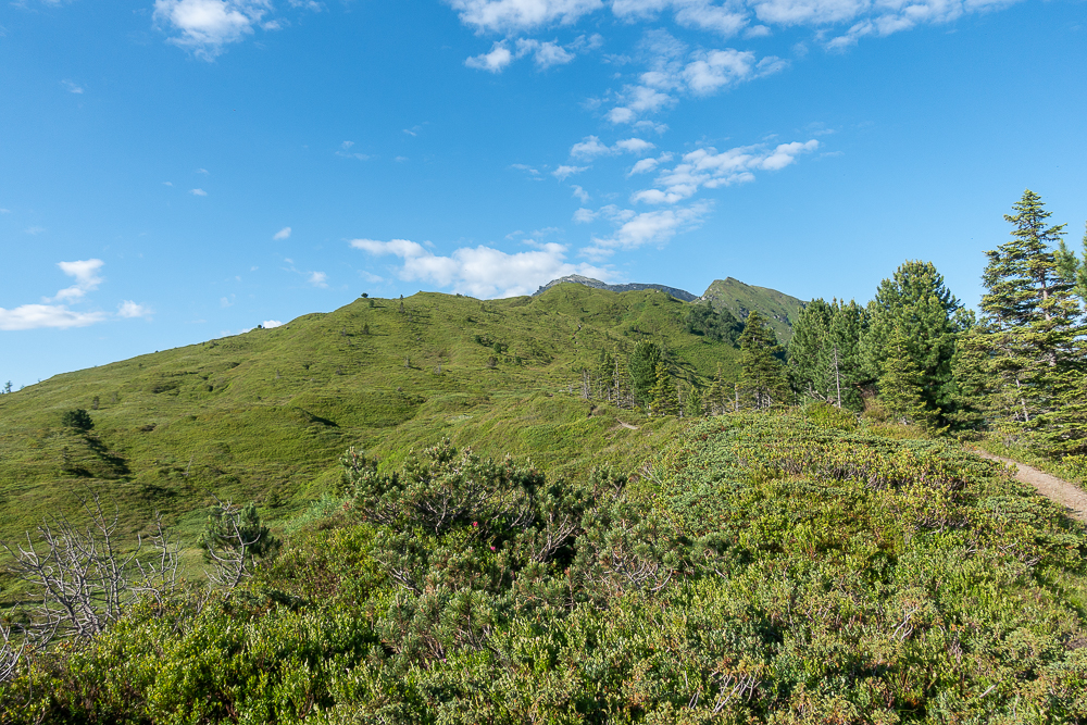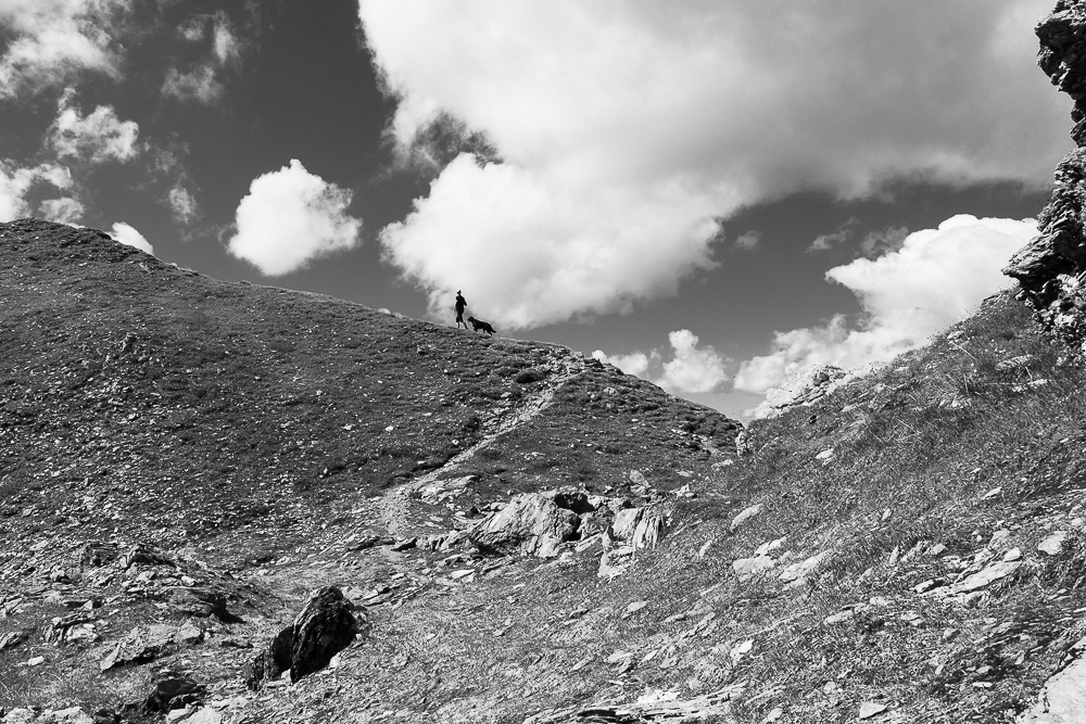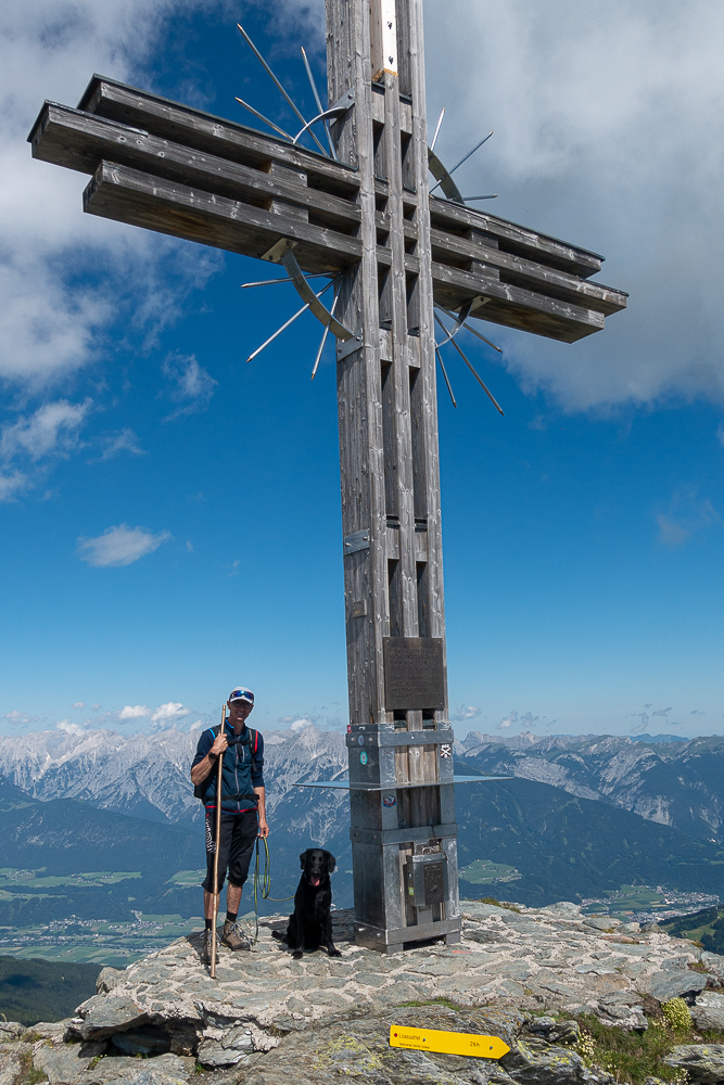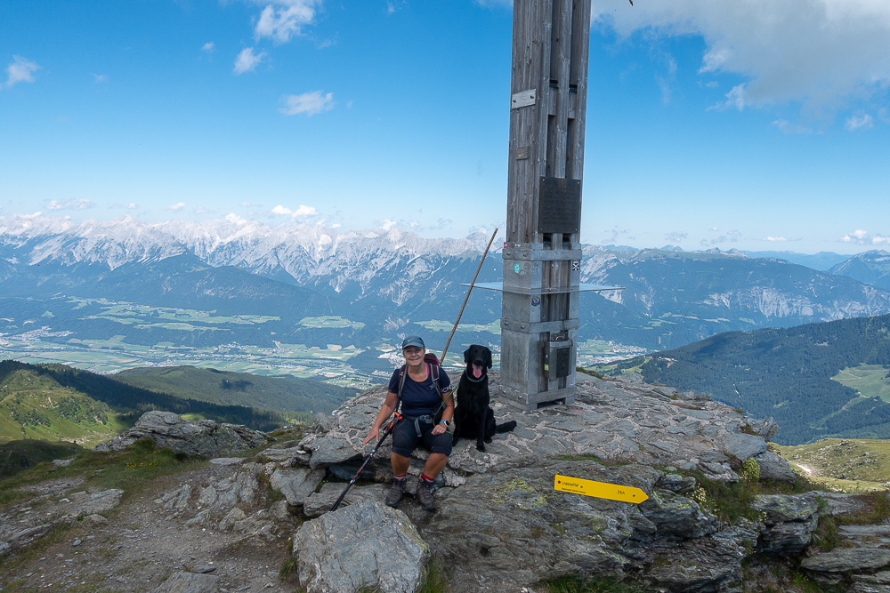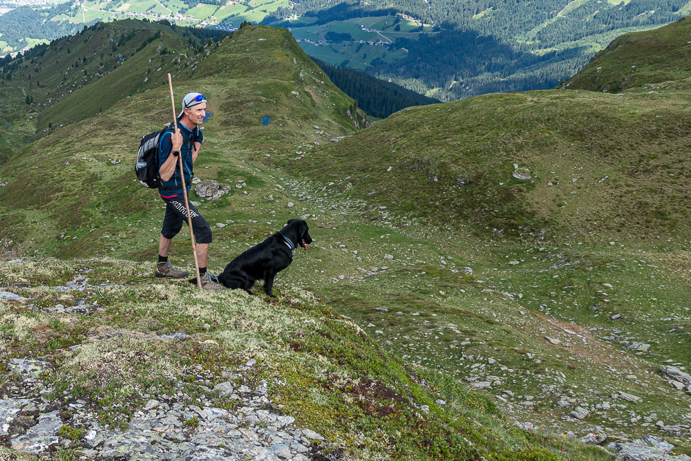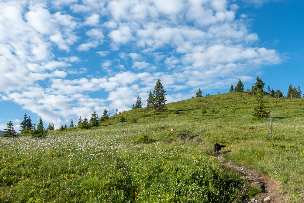 En fantastisk fin, men ansträngande tur gjorde vi i helgen. Det är ju väldigt varmt, så det gäller att vara uppe god tid. Vi körde upp till Loas Sattel och parkerade där. Där ifrån är det 928 höjdmeter att gå uppför. I början sprang Nox fram och tillbaka och utnyttjade varje vattenhål, men efter ett tag blev även han lite tröttare av att gå uppför och gick mer vid sidan om eller mellan oss. Riktigt duktig var han iaf. Uppe på toppen blåste det rätt ordentligt. Vi fikade lite och började sedan med att gå nerför igen. Sträckan var längre och att gå nerför är i längden även det ansträngande, men på ett annat sätt. Efter drygt 13,5,km var vi alla tre glada när vi var tillbaka till bilen igen.