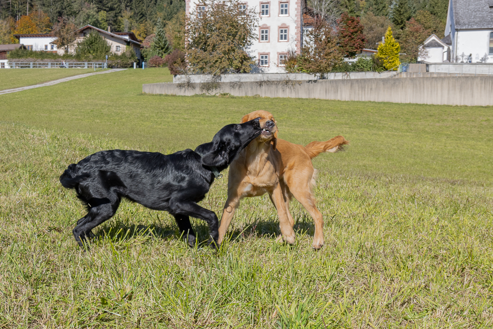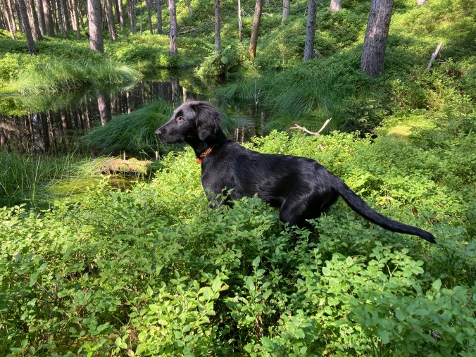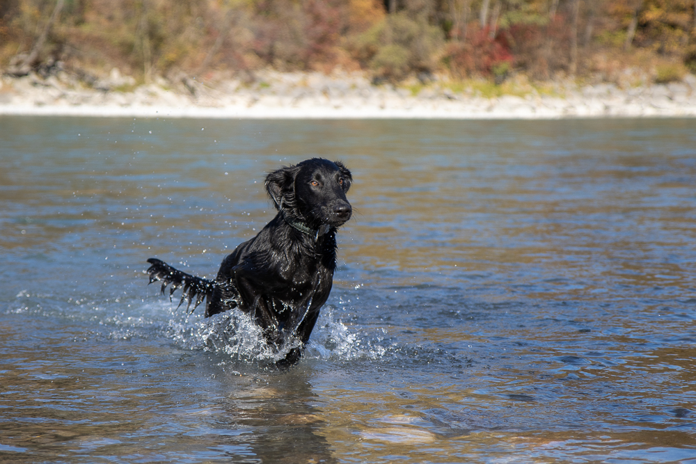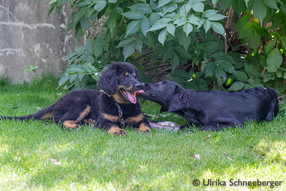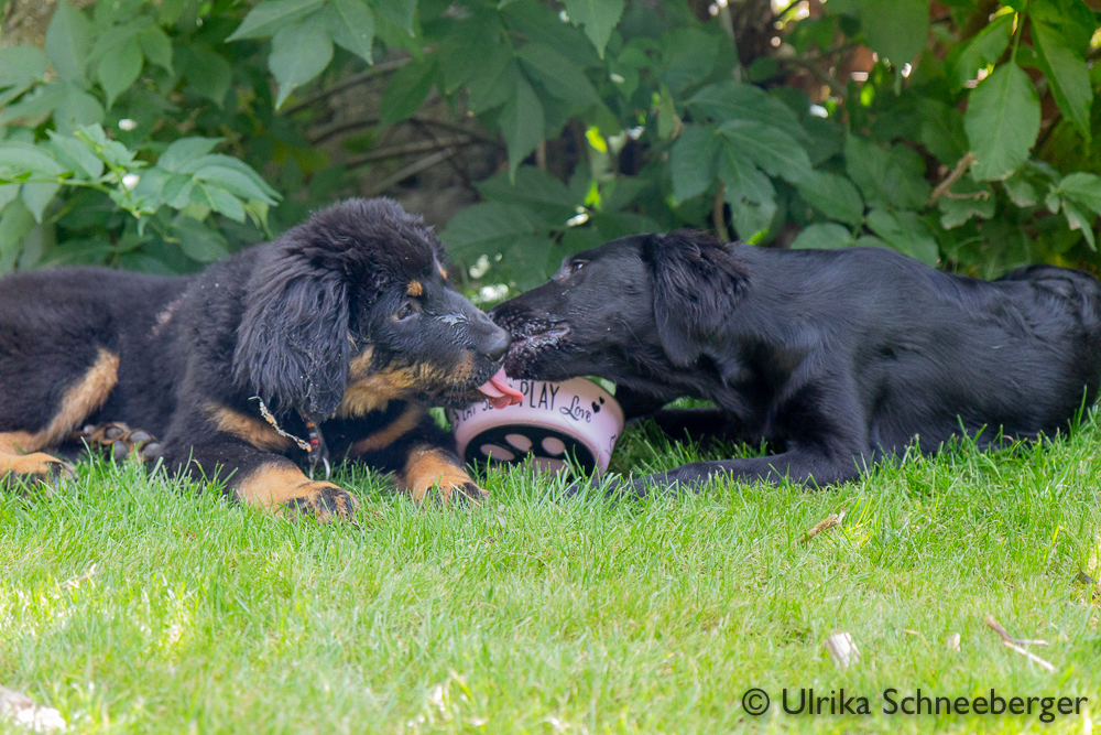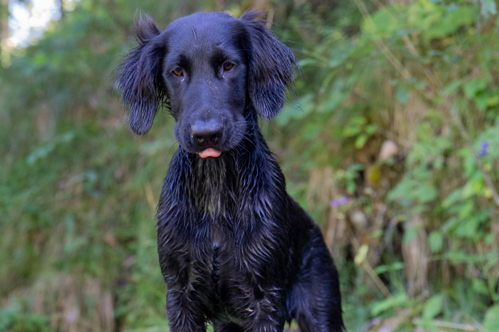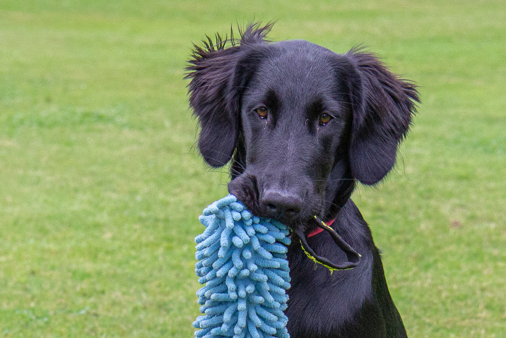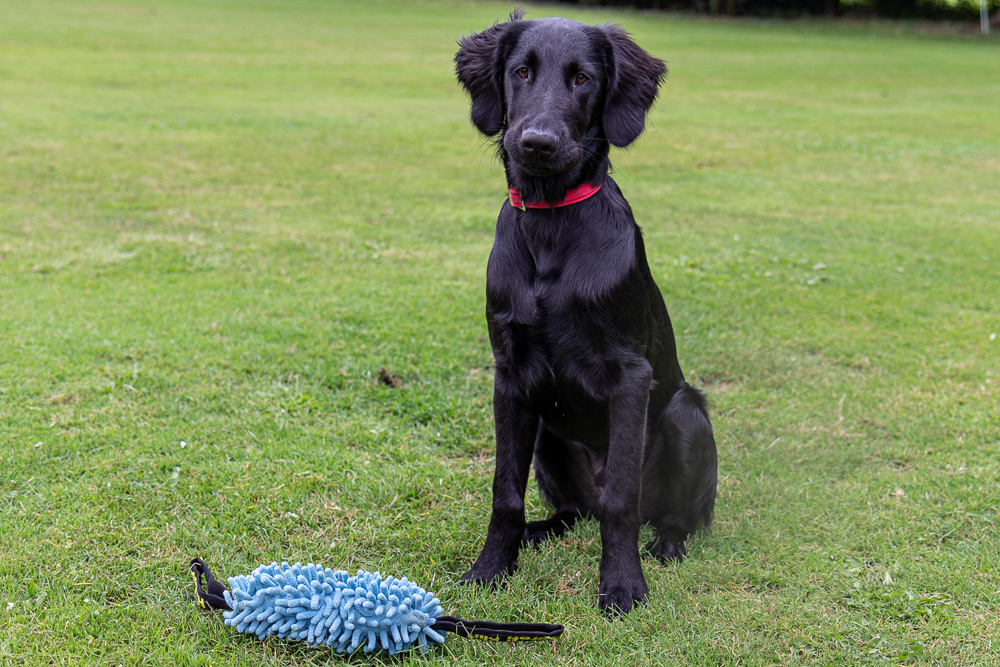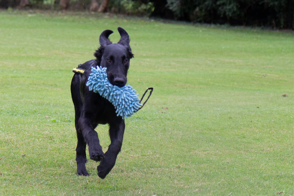 Nox och jag har börjat träna lite regelbundet med några andra flattar. Nox och Kira lärde känna varandra på valpkursen och jag och Anja känner varandra sedan flera år tillbaka. Hon är uppfödare och är inte så intresserad av utställningslinjerna. Vi har börjat träffa varandra en gång i veckan och än så länge går vi bara bredvid varandra lägger ut en dummy ibland, men den får aldrig hämtas. Förra veckan kom även en valpköpare med en lite äldre (1 1/2 år) tik och var med. Det går väl sådär med Nox, det är väldigt spännande när andra är med och dessutom testar han nu gärna lite gränser.