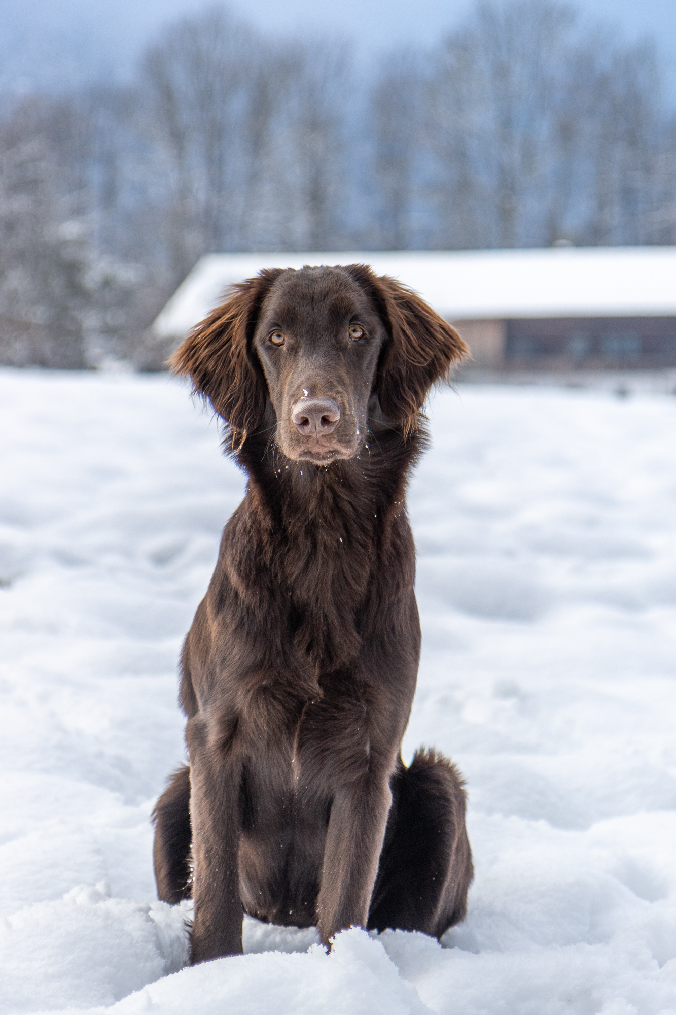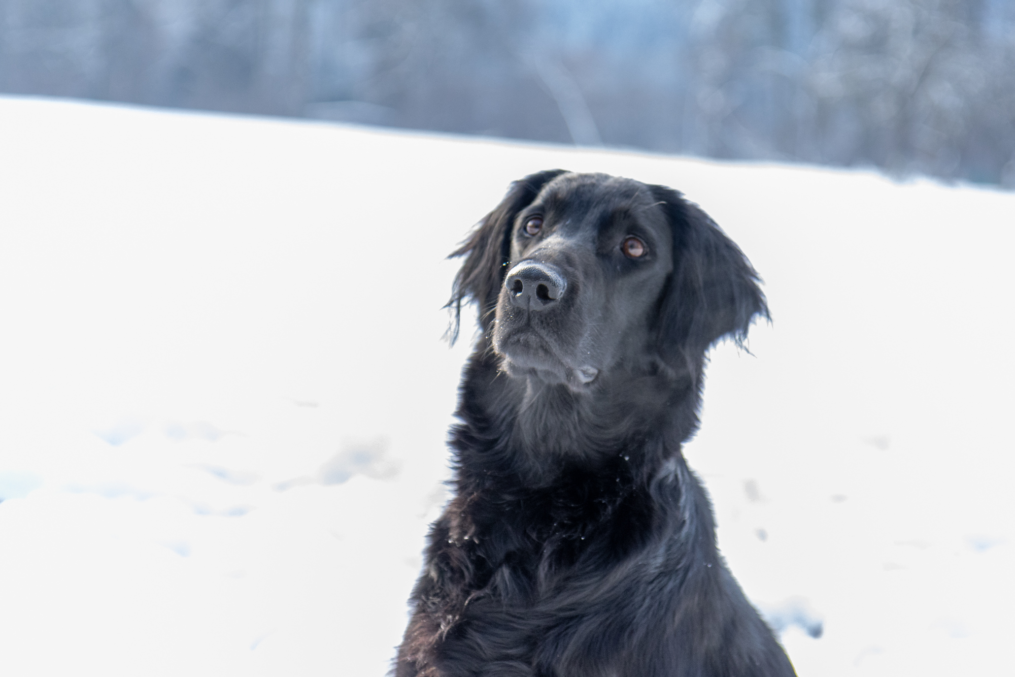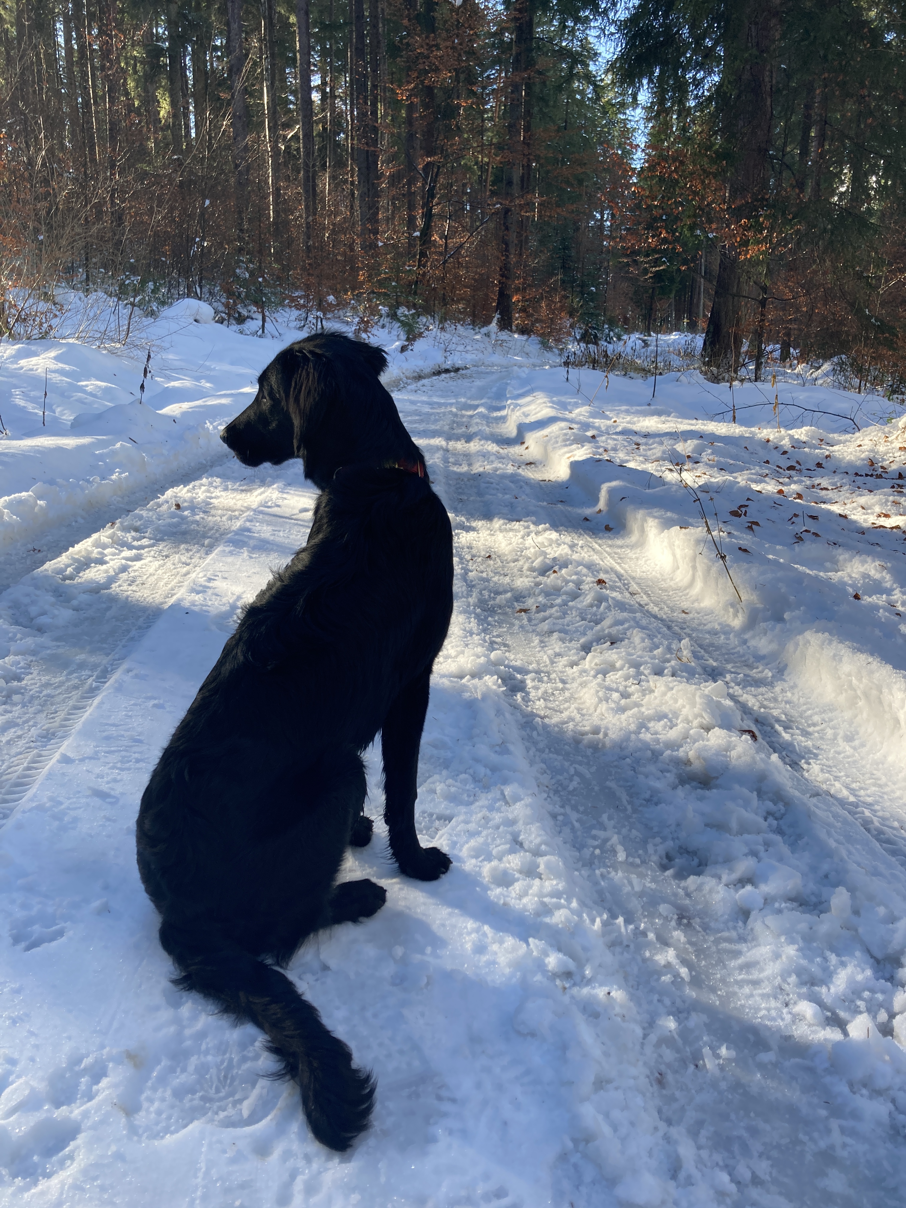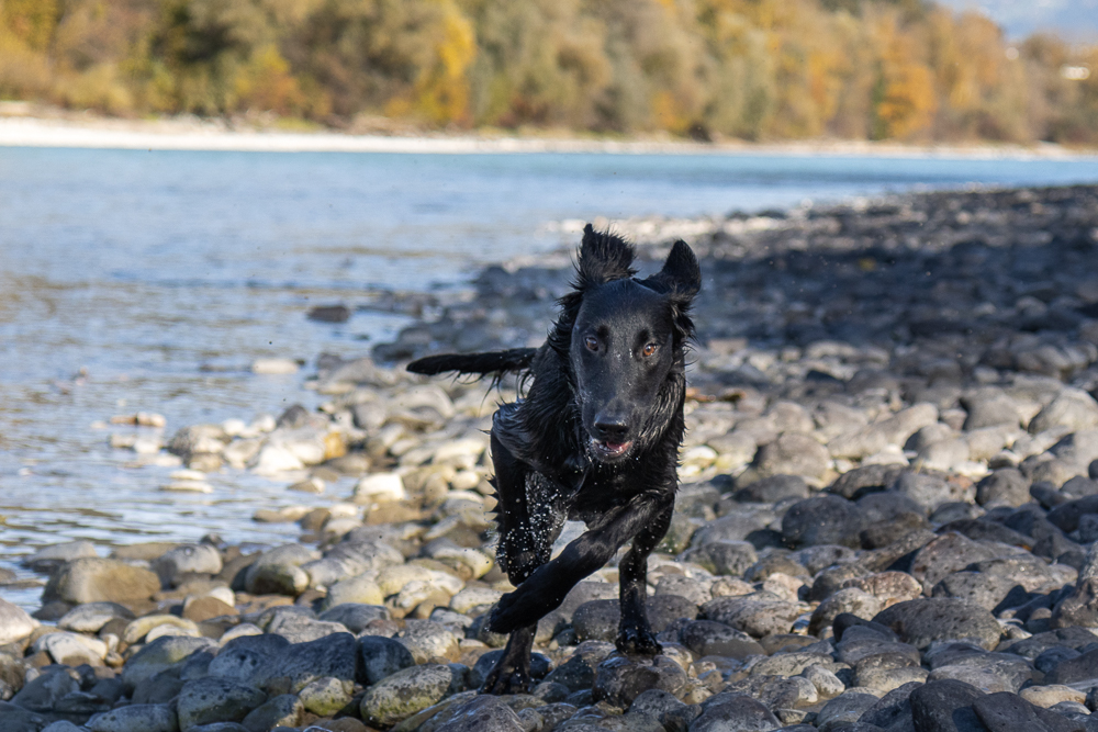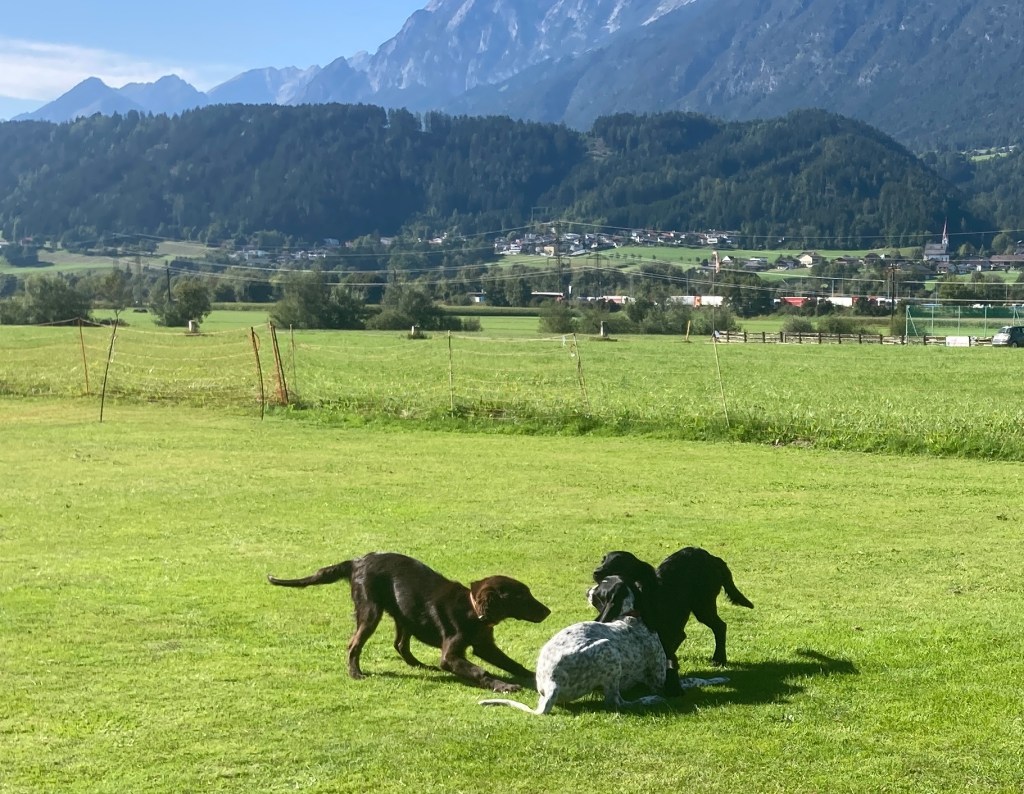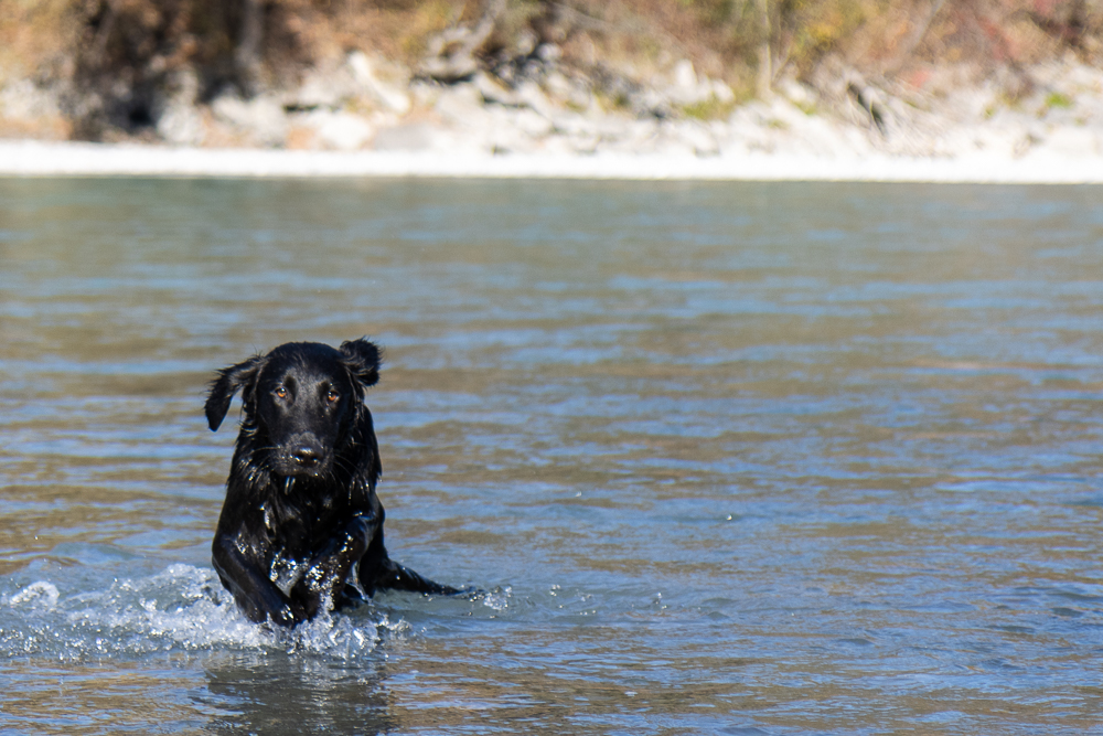 Nox och jag har börjat träna lite regelbundet med några andra flattar. Nox och Kira lärde känna varandra på valpkursen och jag och Anja känner varandra sedan flera år tillbaka. Hon är uppfödare och är inte så intresserad av utställningslinjerna. Vi har börjat träffa varandra en gång i veckan och än så länge går vi bara bredvid varandra lägger ut en dummy ibland, men den får aldrig hämtas. Förra veckan kom även en valpköpare med en lite äldre (1 1/2 år) tik och var med. Det går väl sådär med Nox, det är väldigt spännande när andra är med och dessutom testar han nu gärna lite gränser.