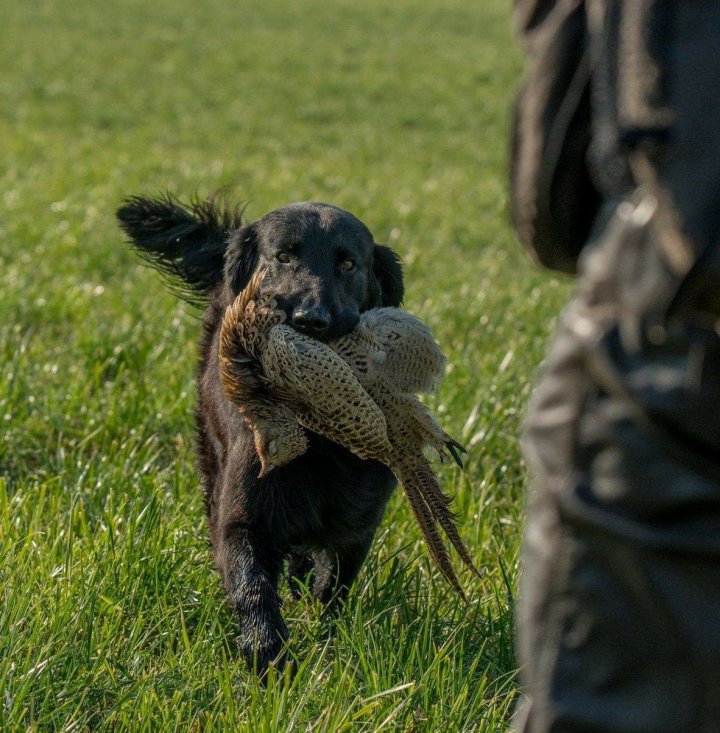 ”Myrra tillhör J-kullen som är en kull som rakt igenom visar ett superbt temperament och fina egenskaper. Vi har haft lyckan att få följa flera av dem på nära håll via träffar och träningar så vi känner att vi har en bra bild av kullen och dessutom har vi helsyster Farin kvar i familjen som vi är helnöjda med. Myrra med ägare är här ofta på träningar och hon är alltid på och fokuserad och är en mjuk och förig tik, som tar för sig ute i marken vid arbete. Hon ligger i bra och ger inte upp när det blir lite svårare. Fint grepp och helt spontan på vilt. Hemma märks hon inte av utan är så där lugn och harmonisk som vi vill ha dem när det inte är arbete på G. Myrra är en mindre, kompaktare och väldigt atletisk tik, gjord för att arbeta helt enkelt.”