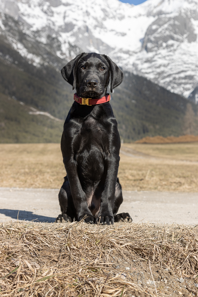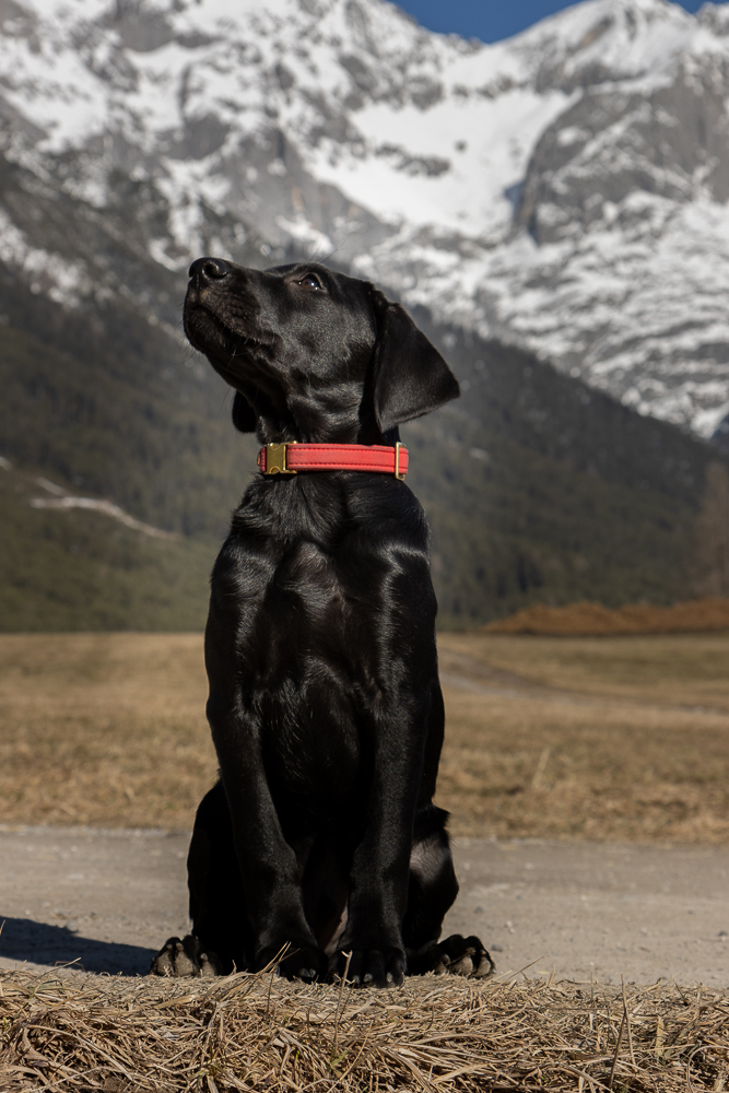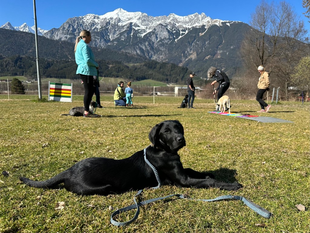 Alles dreht sich um die Hunde und sonst ist nicht viel los. Darran und ich besuchen zwei Welpenkurse. Der eine ist vom Retrieverclub und der andere vom SVÖ Weer organisiert. Zwei ganz unterschiedlich aufgebaute Welpenkurse. In Weer geht es sehr viel um Sozialisierung. Es sind einige Kinder dabei die auch herumrennen und hupfen, es sind viele verschiedene Untergründe zu bewältigen und auch andere Hunde. Dazwischen üben wir etwas Sitz und Platz und hereinrufen. Der Retrieverclub geht es mehr um Bindung, wir machen Folgeübungen, Sitz und bleib, und natürlich hereinrufen mit der Pfeife, großteils alles alleine.